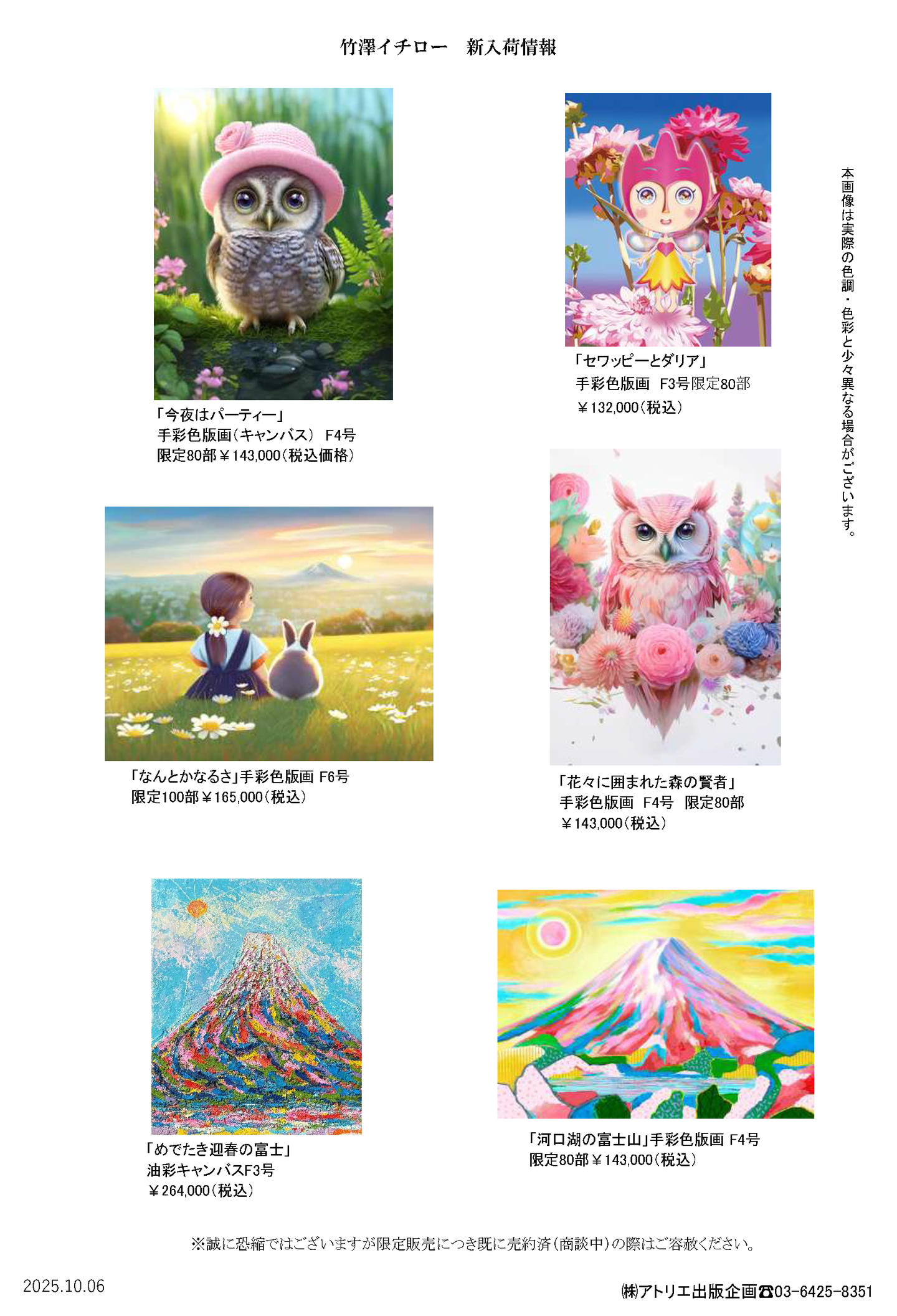本誌掲載の作品は竹澤イチロー氏のオリジナル版画にアクリル絵具で手彩色を施し付加価値を加えたものです。数に限りがありますのでお早めにご予約(ご検討)ください。