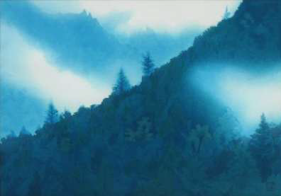 1973年に唐招提寺障壁画の制作準備の為、日本各地を取材旅行し、山と海の写生を100点以上かさねた。1975年5月、唐招提寺障壁画山雲濤声が完成し、6月3日に御影堂へ奉納する。その「山雲」の習作(下図)が、本作品の原画であり、東山芸術を代表する1作になります。