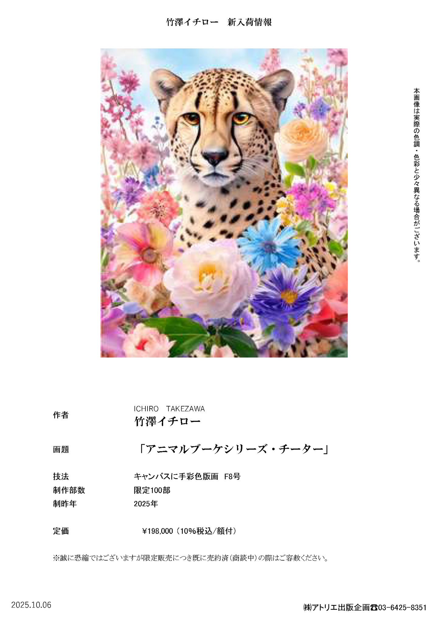 本誌掲載の作品は竹澤イチロー氏のオリジナル版画にアクリル絵具で手彩色を施し付加価値を加えたものです。数に限りがありますのでお早めにご予約(ご検討)ください。